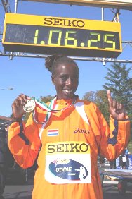 O II Campeonato Mundial de Corrida de Rua da IAAF (Associação Internacional das Federações de Atletismo) disputado em Udine, Itália, foi palco de quebra de recorde mundial da meia maratona. O feito ficou por conta da queniana, naturalizada holandesa, Lornah Kiplagat, de 33 anos, que marcou 1h06min25seg, seguida pelas atletas quenianas, Mary Keitany (1h06min48seg) e Pamela Chepchumba (1h08min06seg). As condições climáticas (16 a 21 graus Celsius, com umidade variando entre 46a 36%) ajudaram a todos os participantes. Entre as 56 mulheres participantes, 33 atletas melhoraram os seus tempos pessoais. (veja os resultados das mulheres)